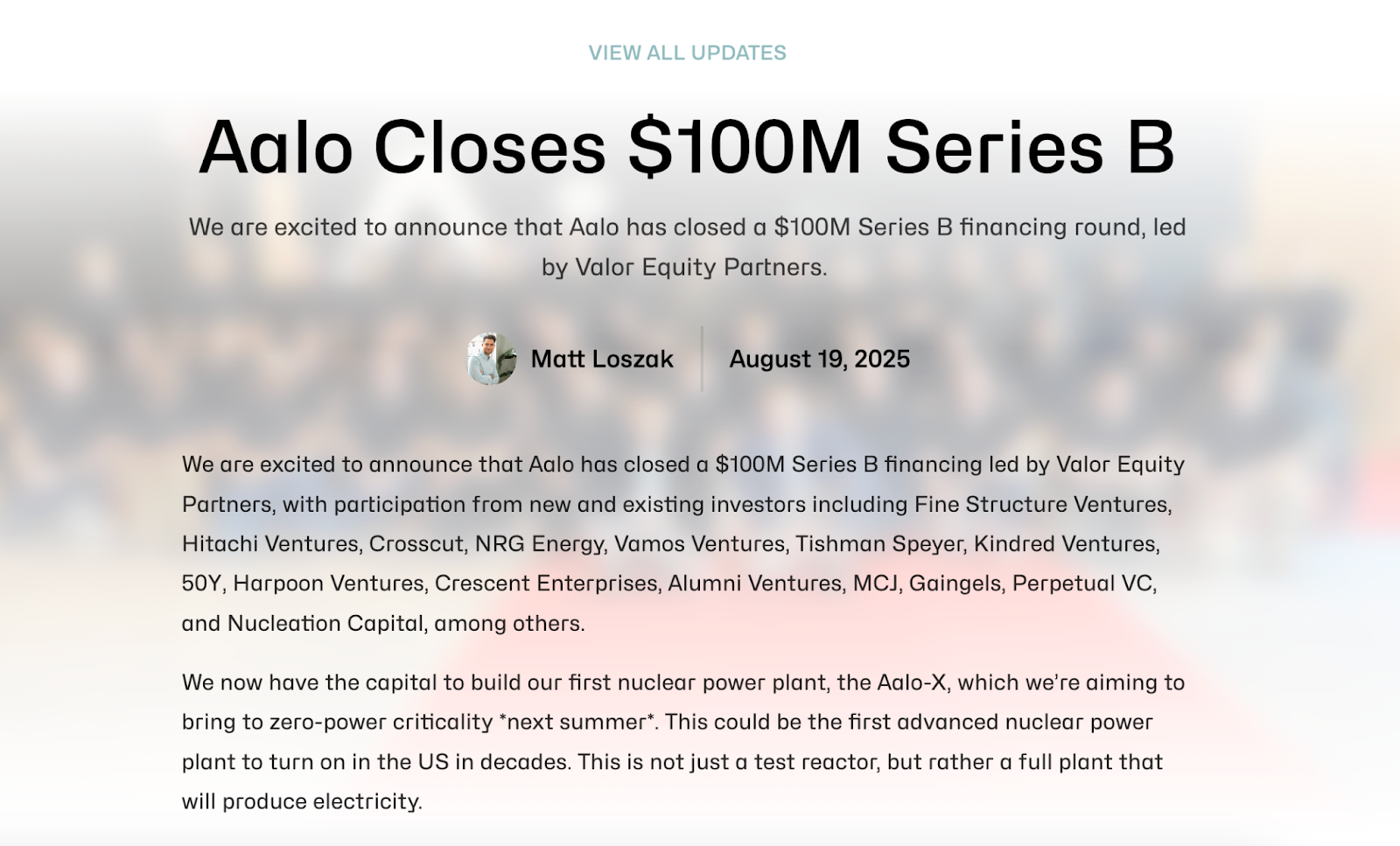 Aalo Atomics: Aalo Atomics is a nuclear startup building small, factory-made sodium-cooled reactors designed to power AI data centers.